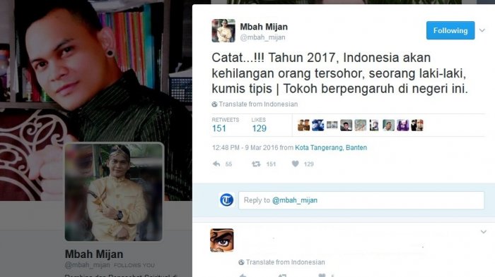 TRIBUNWOW.COM - Paranormal sekaligus pembina dan penasihat Badan Pembina Potensi Keluarga Besar (BPPKB) Banten, Mbah Mijan mengungkapkan kekagumannya terhadap pemimpin Front Pembela Islam (FPI), Rizieq Shihab.