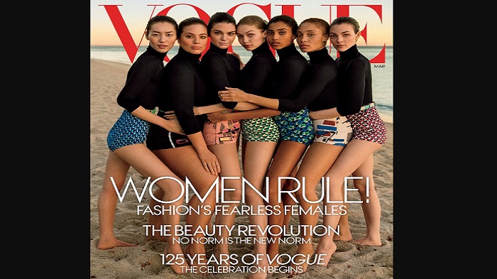 Kendall Jenner dan Gigi Hadid bersama dengan lima model lainnya sedang melakukan pemotretan untuk sampul majalah Vogue edisi Bulan Maret 2017.