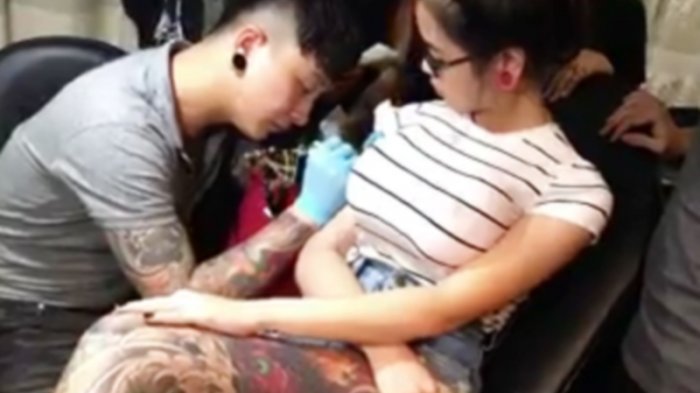 Lagi Asyik Ditato Wanita Ini Alami Kejadian Mengejutkan, Perhatikan Dadanya
