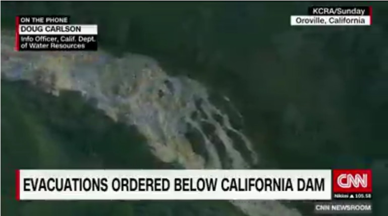 Dikutip dari CNN.com pada Senin (13/02/2017), bendungan tersebut masih utuh, tetapi katup semantara yang menahan air ketika debit air tinggi itu terkikis pada Minggu (12/2/2017).