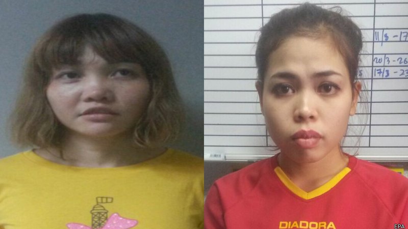Penetapan dua perempuan ini menjadi tersangka karena keduanya tertangkap kamera pengawas sedang membekap mulut Kim Jong Nam di bandara tersebut.