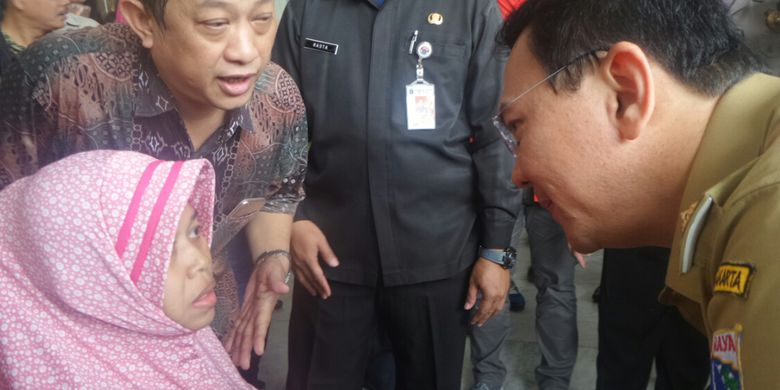 "Ibu mau mengadu apa, mohon maaf ini saya terlambat," kata Ahok.