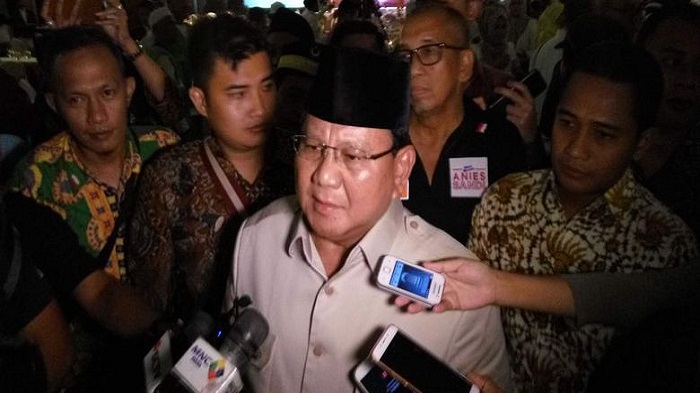 "Bahwa calon yang diusung kami tidak Pancasila, yang sektarian, dan yang akan menindas kelompok minoritas, itu fitnah yang kejam dan sangat menyedihkan. Tetapi kita harus sadar hidup itu separuh perjuangan antara yang benar dan yang tidak," kata Prabowo. (*)