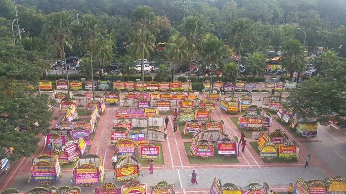 Bahkan, karena menarik perhatian, arus lalu lintas di depan Balai Kota pun sempat tersendat karena para pengendara memperlambat kendaraan mereka untuk menyaksikan karangan-karangan bunga tersebut.