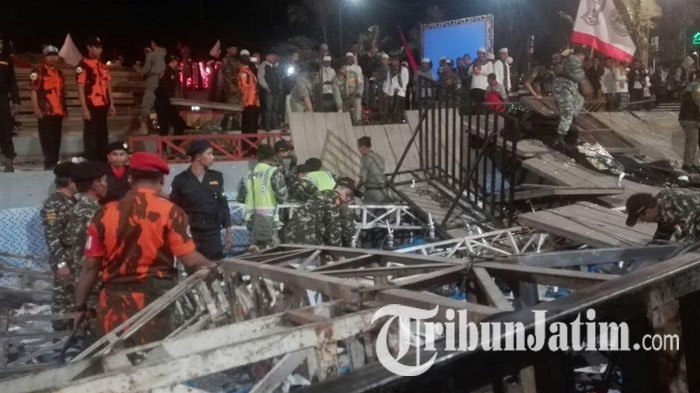 Sayangnya, acara tersebut diwarnai kecelakaan ambruknya panggung jamaah wanita.
