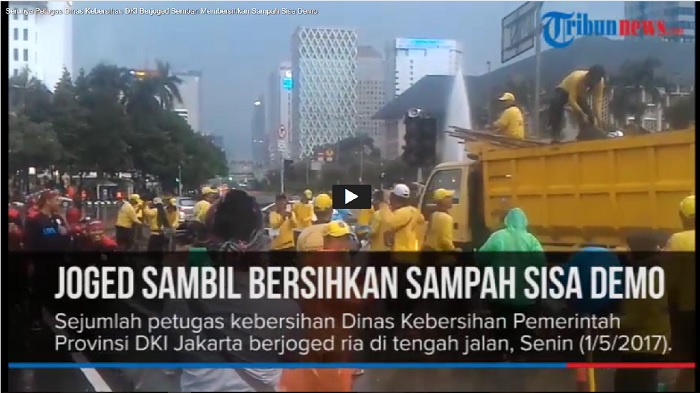 Aksi 'Pahlawan' di Balik Unjuk Rasa Hari Buruh: Bersihkan Sampah Sambil Joget di Bawah Guyuran Hujan