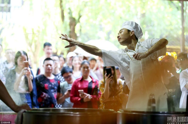 Tian Bo adalah pembuat makanan yang disebut 'Longevity Noodles', makanan tradisional dari Sichuan, Huanglongxi, Tiongkok.