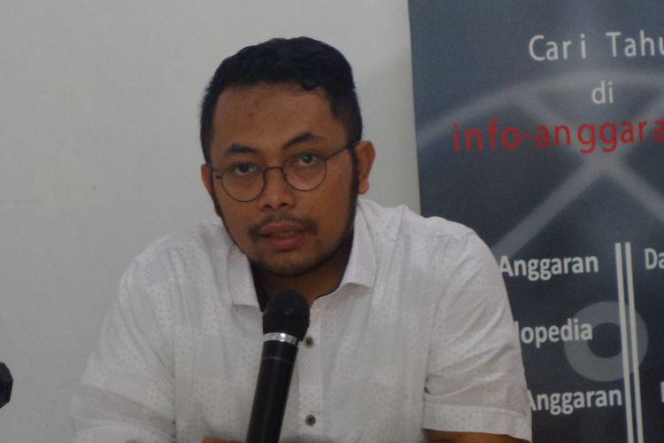 Deputi Sekjen FITRA, Apung Widadi dalam konferensi pers di Seknas Fitra, Jakarta, Rabu (26/4/2017).