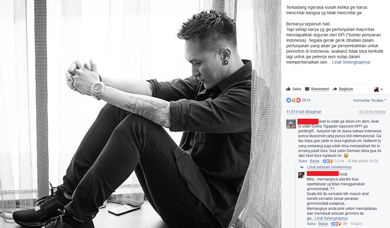 Tapi tahukah, bahwa sebelumnya Demian sempat mengungkapkan kesedihan sekaligus rasa geramnya terhadap kondisi sulap di Indonesia?