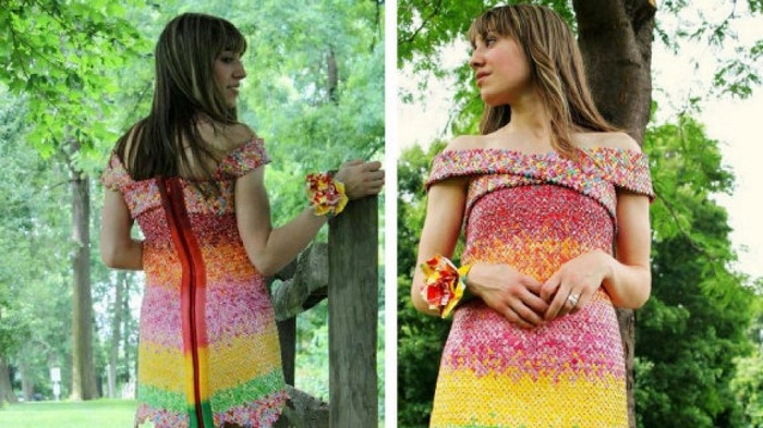 Dilansir dari Thestar.com, gadis bernama Emily Seilhamer itu membuat baju dari dari bungkus permen.