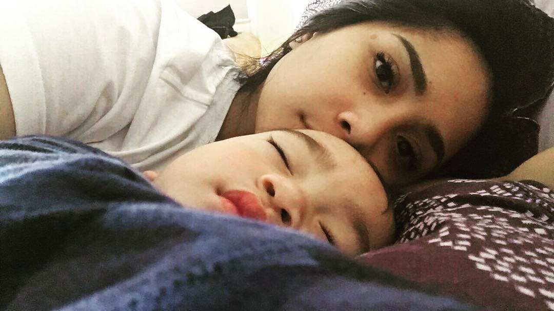 Rafathar terlihat tak mau lepas dari gendongan sang mama.