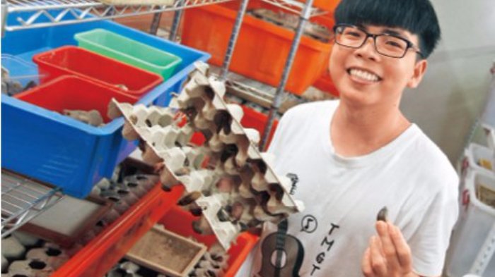 Seorang pemuda 20 tahun asal Taiwan ini memilih mencari uang dengan beternak serangga.