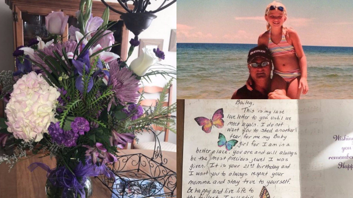 "My dad passed away when I was 16 from cancer and before he died he pre payed flowers so i could receive them every year on my birthday. Well, this is my 21st birthday flowers and the last. Miss you so much daddy" kicau Bailey Sellers.
