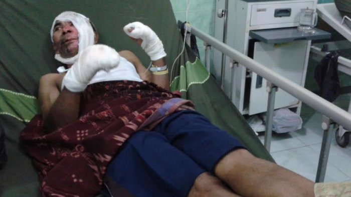 Nasori (48), warga RT 001/RW 001 Desa Karangmulya, Kecamatan Bojong, Kabupaten Tegal, terkena aspal panas di muka dan kedua tangannya.