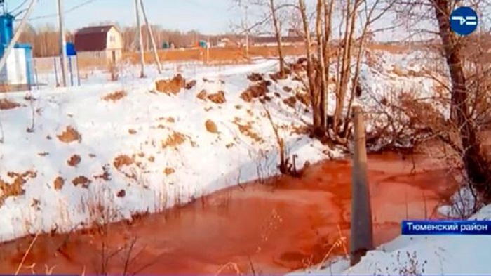 TRIBUNWOW.COM - Warna air Sungai Molchanka di Kota Tyumen, Siberia, Rusia tiba-tiba berubah menjadi merah semerah darah.