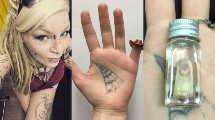 Seorang wanita memotong jarinya sendiri dengan tujuan supaya terlihat imut dan kemudian menjadikannya sebuah liontin.
