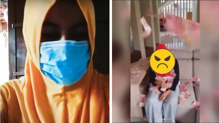 Sambil emosi, sang istri pun tampak menghujani N dengan uang pecahan seratus ribu dan lima puluh ribu rupiah.