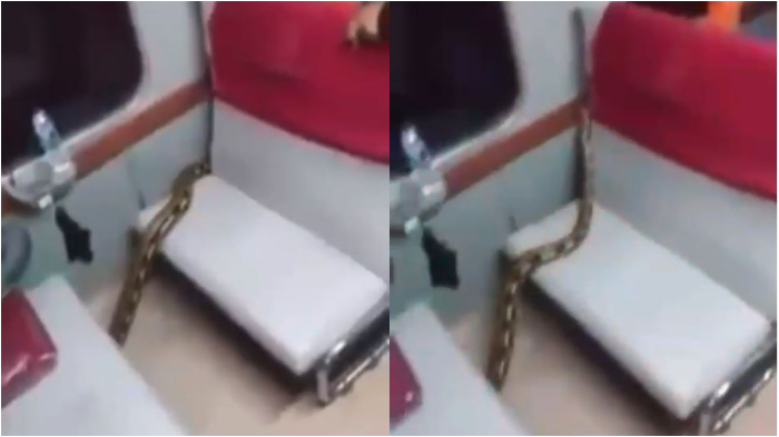 Ular piton seberat 7,5 kilogram melata di antara kursi penumpang kereta pukul empat pagi, penumpang geger.