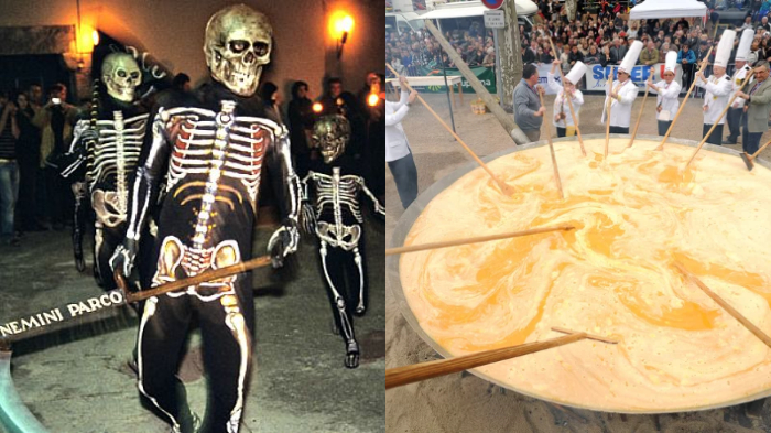 Setiap tahun telur dadar raksasa disajikan di alun-alun utama kota.