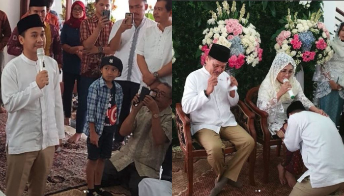 Pada foto yang diunggahnya, Dika tampak sungkem meminta doa kepada kedua orang tuanya.