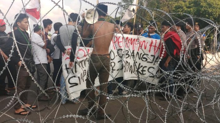 TRIBUNWOW.COM - Aksi demo mahasiswa yang dilakukan di depan Istana Merdeka, Jakarta, Senin (21/5/2018) berakhir ricuh.
