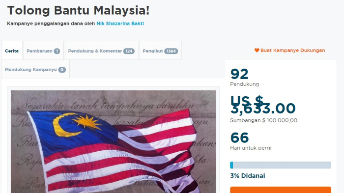 "Saya membuat penggalangan dana ini karena saya ingin mengumpulkan orang-orang Malaysia dan seluruh warga dunia untuk membantu berkontribusi dalam mengurangi utang Malaysia," tulisnya dalam deskripsi.