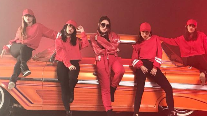 Via juga sempat berjoget bersama belasan penari latar di belakangnya.