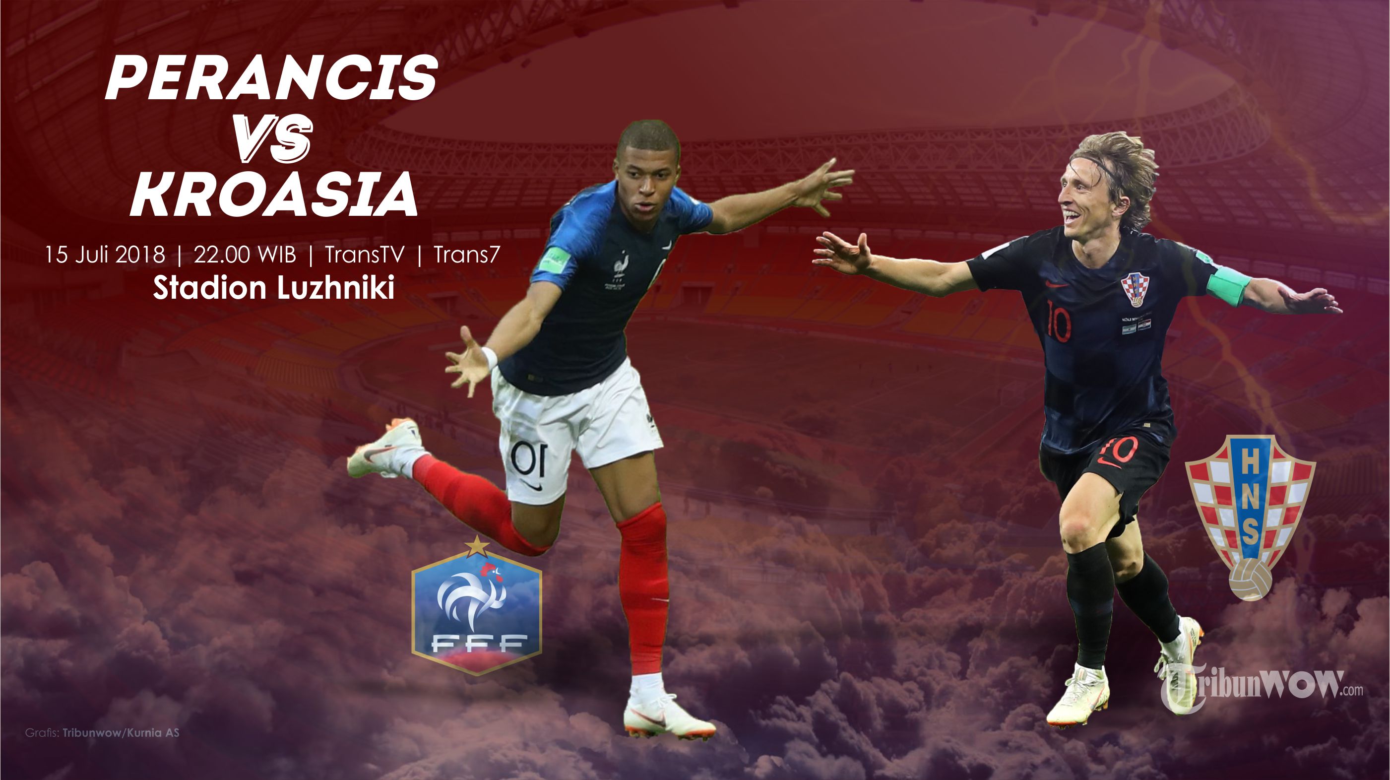 TRIBUNWOW.COM - Final Piala Dunia 2018 akan mempertemukan dua kesebelasan terkuat, yakni Perancis melawan Kroasia.