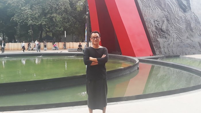 "Nah kemudian di depan bilah itu ada kolam. Dari kolam itu ada refleksi, refleksi itu membuat image sebuah bilah bukan separuh," kata Sunaryo saat dihubungi pada Rabu (29/8/2018) malam.