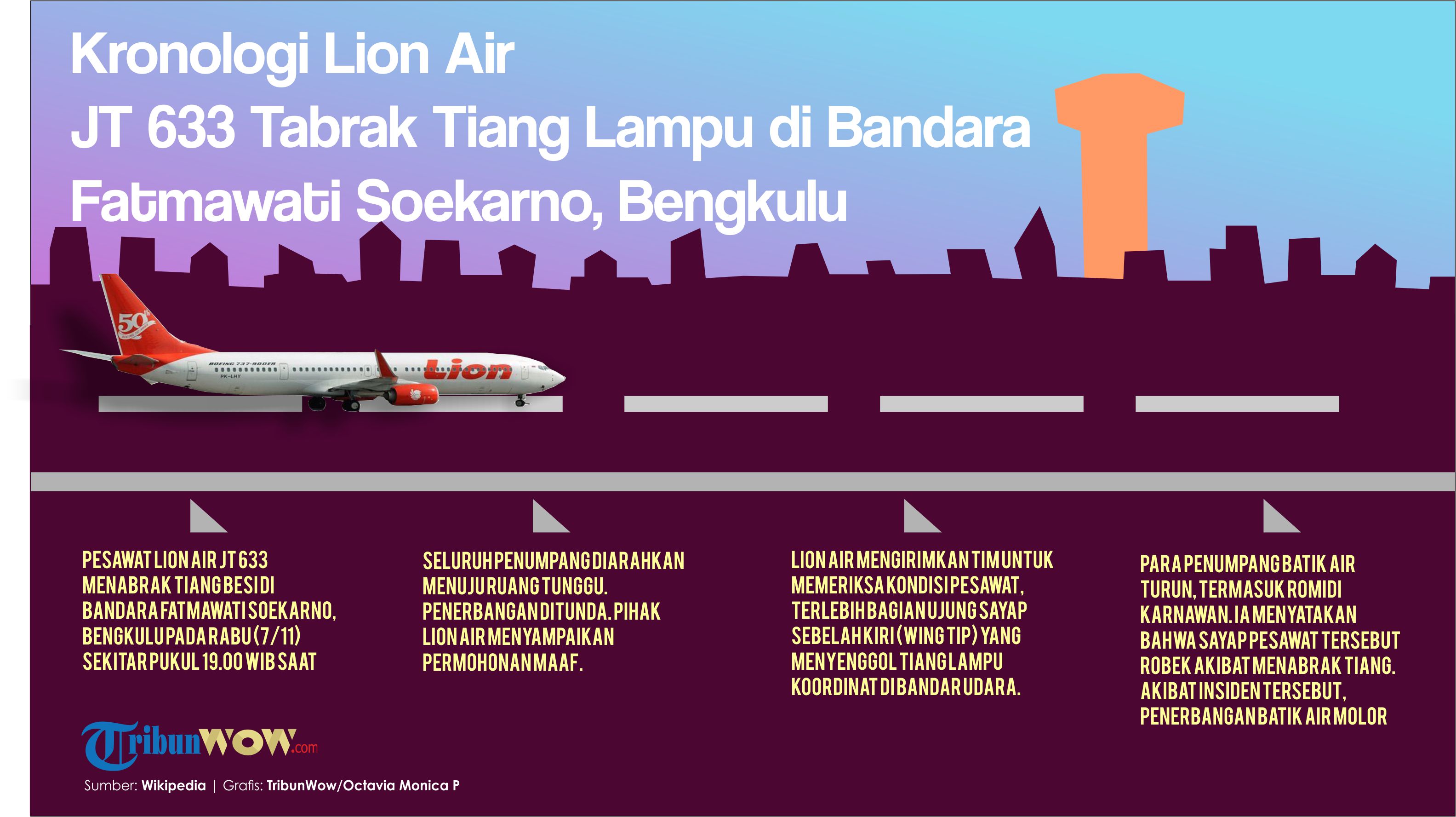 Diberitakan sebelumnya, sayap pesawat Lion Air jenis Boeing 737-900 ER, registrasi PK-LGY dengar nomor penerbangan JT 633 rute Bengkulu-Jakarta, dikabarkan menabrak tiang titik koordinat pada Rabu (7/11/2018), di Bandara Fatmawati Bengkulu.