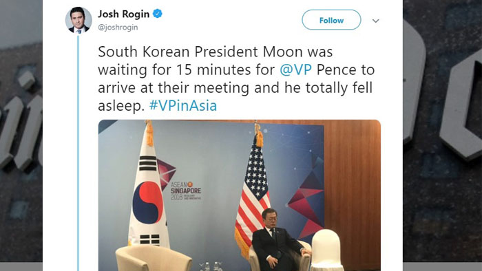 Penulis di surat kabar Washington Post, Josh Rogin, mengabadikan momen Presiden Korea Selatan, Moon Jae-in, yang terlihat tertidur.