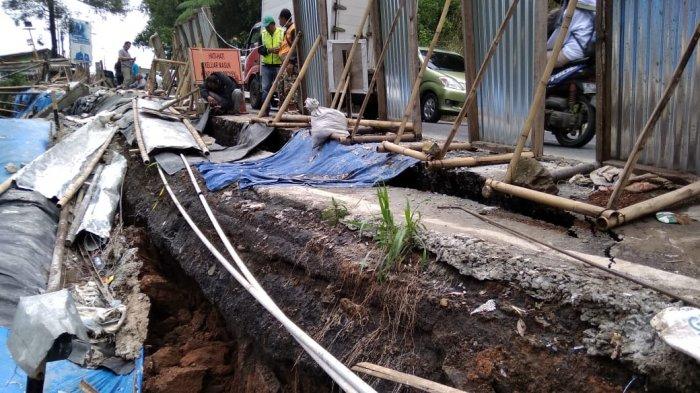 Retakan 20 meter yang terjadi di Jalan Raya Puncak, Riung Gunung, Kabupaten Bogor (Tribun Jabar/ Ferri Amiril)