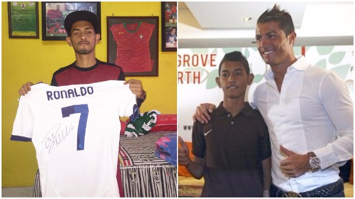 Di foto yang diunggah Martunis tersebut, nampak dirinya saat kecil yang menatap Christiano Ronaldo.