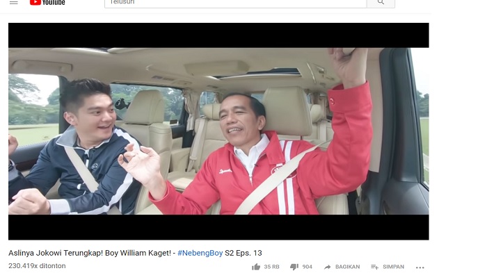 Program 'Nebeng Boy' yang diunggah Boy William melalui akun YouTube-nya berkesempatan mewawancarai Presiden Jokowi.