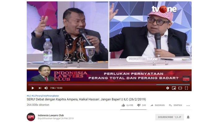 Hal itu disampaikannya saat menjadi narasumber di acara Indonesia Lawyers Club (ILC) yang mengusung tema 'Perlukah Pernyataan Perang Total Dan Perang Badar?', pada Selasa (26/2/2019).