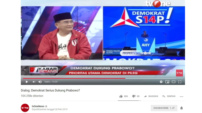 Hal itu disampaikannya saat menjadi narasumber acara Kabar Petang seperti yang diunggah melalui channel YouTube tvOneNews, Kamis (28/2/2019).