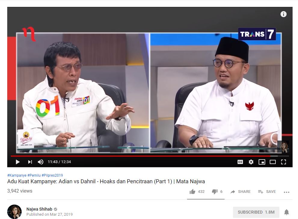 Dalam perdebatan, keduanya berdebat soal hoaks.