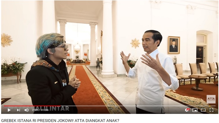 Pernyataan tersebut disampaikan pada chanel YouTube Atta Halilinta dengan judul 'Grebek istana RI Presiden Jokowi! Atta Diangkat Anak?', pada Senin (1/4/2019).