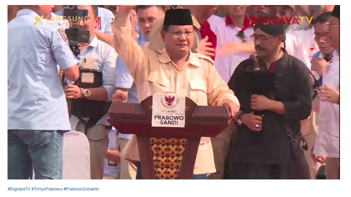 "Saya ingin mengucapkan terima kasih kepada panglima TNI karena panglima TNI baru saja kemarin mengeluarkan statement 'TNI akan netral'," ujar Prabowo.