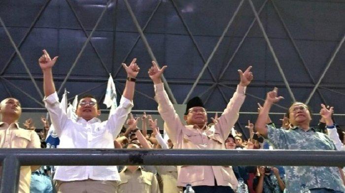 TRIBUNWOW.COM - Calon presiden nomor urut 02 Prabowo Subianto melontarkan sejumlah pantun saat memberikan sambutan di acara peringatan Hari Buruh Internasional di Tennis Indoor Senayan, Jakarta Pusat, Rabu (1/5/2019).