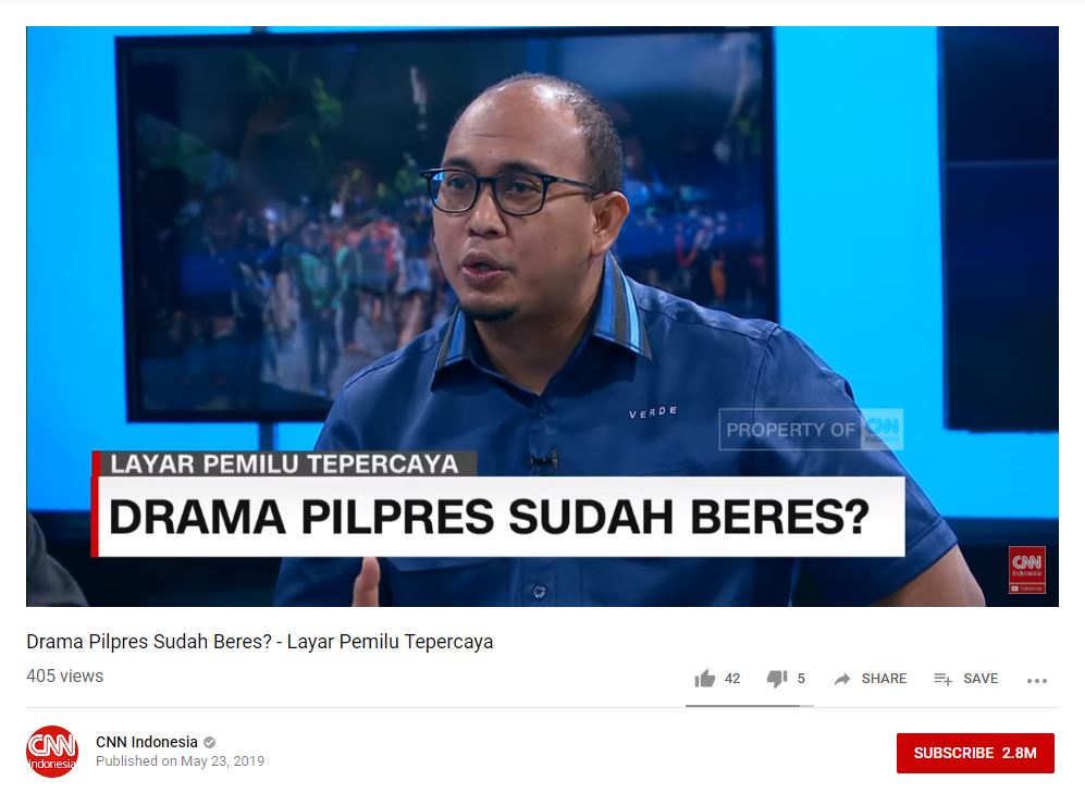 Diberitakan TribunWow.com, hal tersebut disampaikan Andre saat menjadi narasumber di program Layar Pemilu Tepercaya, seperti dalam saluran YouTube CNN Indonesia, Jumat (24/5/2019).