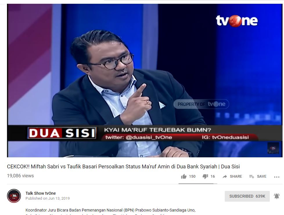 Diberitakan TribunWow.com, hal tersebut seperti tampak dalam program Dua Sisi seperti di saluran YouTube Talk Show tvOne, Jumat (14/6/2019).