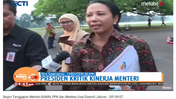 Dikutip TribunWow.com dari tayangan 'Seputar iNews Pagi' di iNews, tanggapan itu disampaikan Rini setelah selesai melakukan sidang paripurna di Istana Bogor, Senin (8/7/2019).
