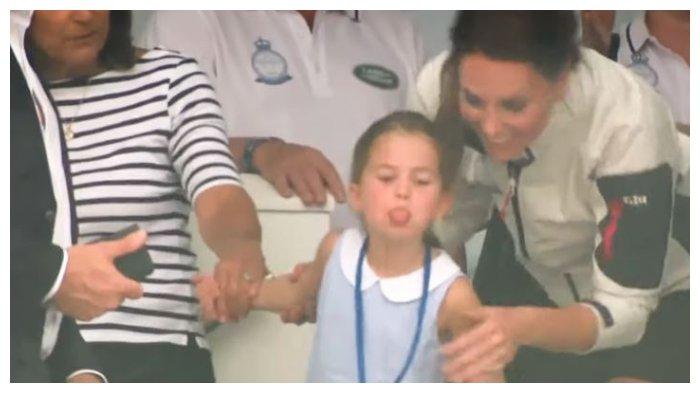 Princess Charlotte malah menjulurkan lidahnya ke para penonton, hal itu membuat Kate Middleton kaget akan tingkah putrinya.