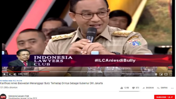 Gubernur DKI Jakarta, Anies Baswedan menjawab prundungan atau bullyan terhadap dirinya saat menjadi bintang tamu di acara Indonesia Lawyers Club (ILC)