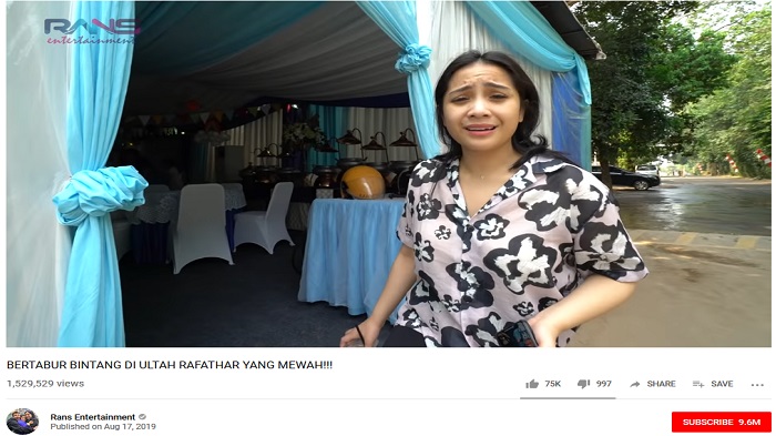 Dilansir TribunWow.com dari tayangan YouTube Rans Entertainment, Nagita mengaku sempat tak enak dengan tetangga karena tenda pesta ulang tahun Rafathar, Sabtu (19/7/2019).