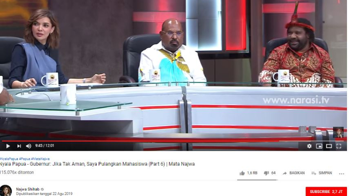 Gubernur Papua Lukas Enembe akan memberikan ketegasan terkait mahasiswa Papua yang berkuliah di luar Papua di acara Mata Najwa, Rabu (21/8/2019).