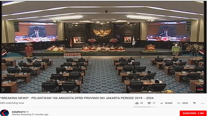 SEDANG BERLANGSUNG - Video Live Streaming Pelantikan 106 Anggota DPRD DKI Jakarta Periode 2019-2024
