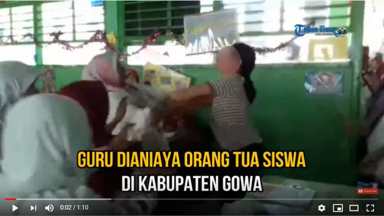 TRIBUNWOW.COM - Seorang guru Sekolah Dasar (SD) Pabbangiang di Kabupaten Gowa, Sulawesi Selatan, dikeroyok wali murid saat kegiatan belajar mengajar.
