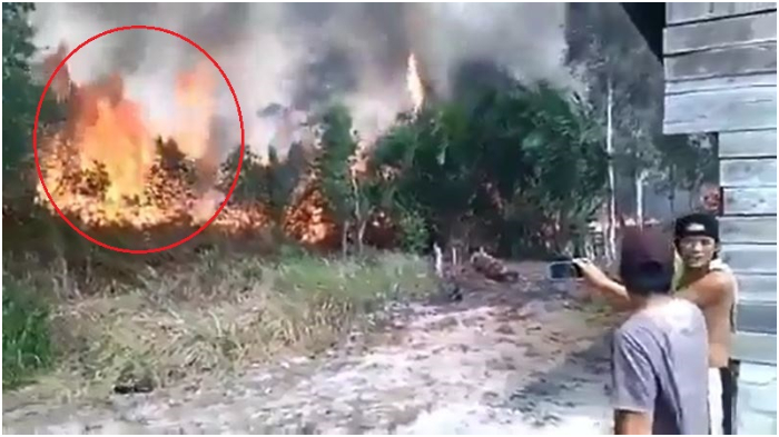 Kali ini api yang tinggi menjulang dari arah hutan dengan cepat mendekati rumah warga.